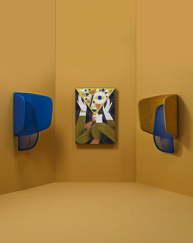 This slender and quiet upholstery furniture is fixed to the wall just like a piece of art. Once immersed in this “painting” you can enjoy a peaceful moment.