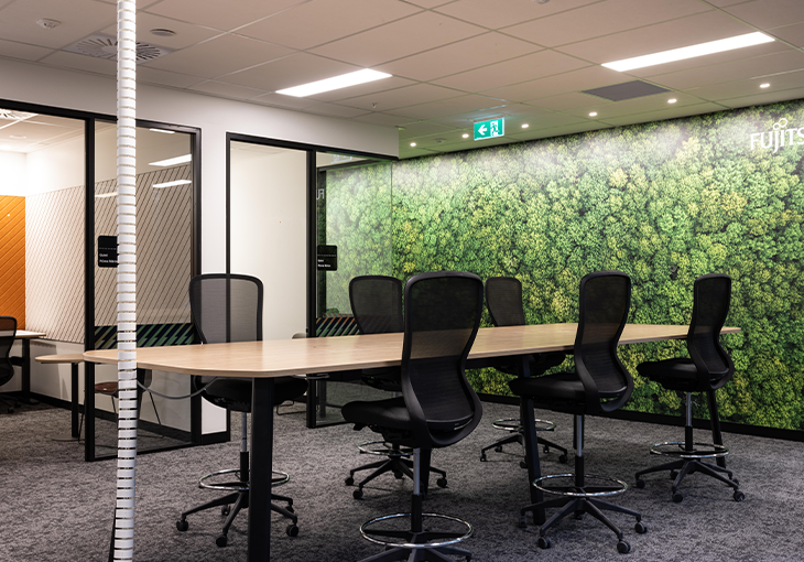 Zenith Wellington in collaboration with Texture Collective provided Fujitsu New Zealand with interior solutions for their new office space located in the redeveloped buildings now known as Bowen Street Campus. A selection of customised and coordinated furniture was provided to create a positive and productive environment for the Fujitsu team.
