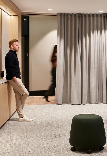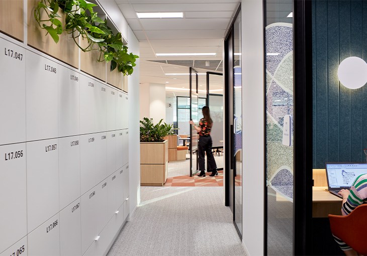 Each neighbourhood contains personal lockers, shared team storage, and a variety of work settings from sit to stand workstations, to singular desks for focused working. Adjacent are shared breakout huddle spaces, in which teams can meet away from their neighbourhood for informal and collaborative working.
